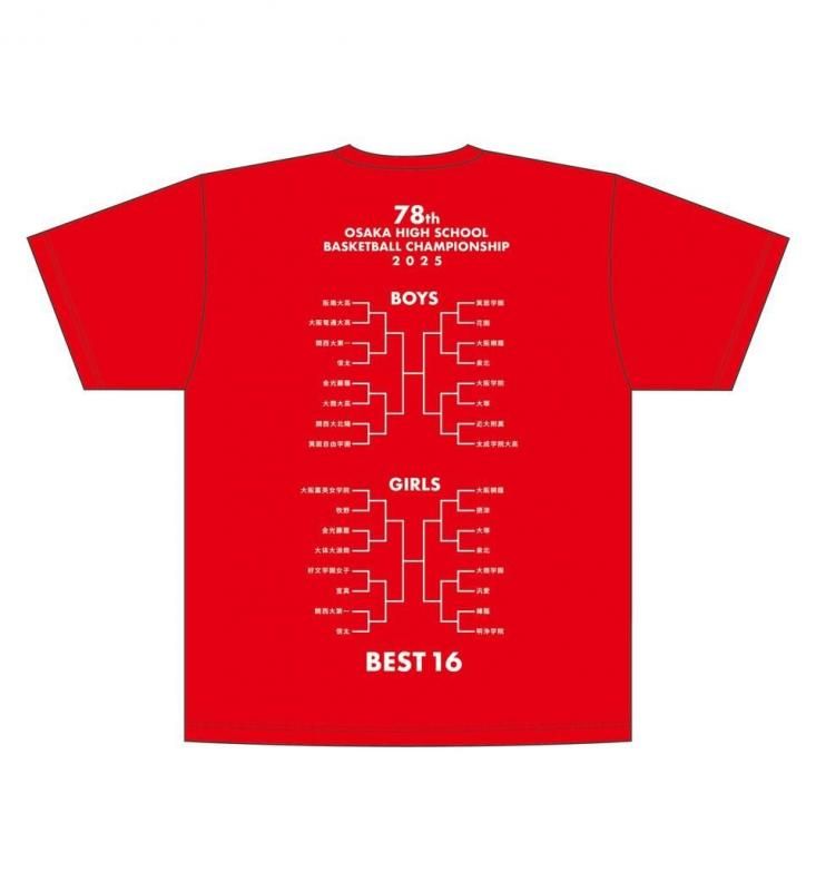 ベスト16Tシャツ(レッド)■令和7年度第78回大阪高等学校バスケットボール選手権大会■綿100%素材
