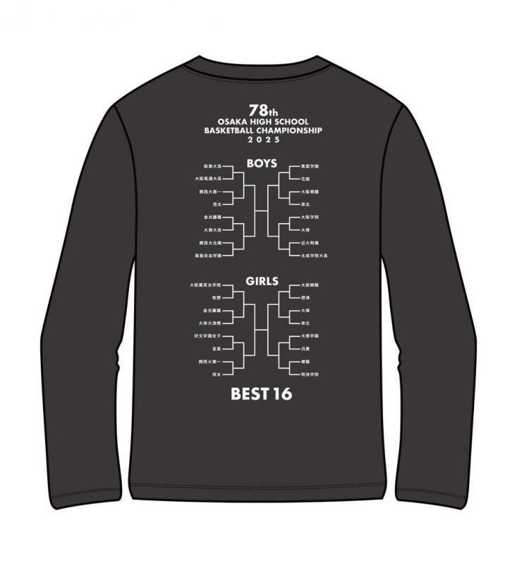 ベスト16ロンT長袖Tシャツ(ブラック)■令和7年度第78回大阪高等学校バスケットボール選手権大会■ドライ生地