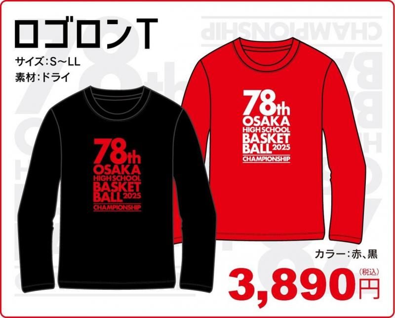 記念ロゴロンT長袖Tシャツ(ブラック)■令和7年度第78回大阪高等学校バスケットボール選手権大会■ドライ生地